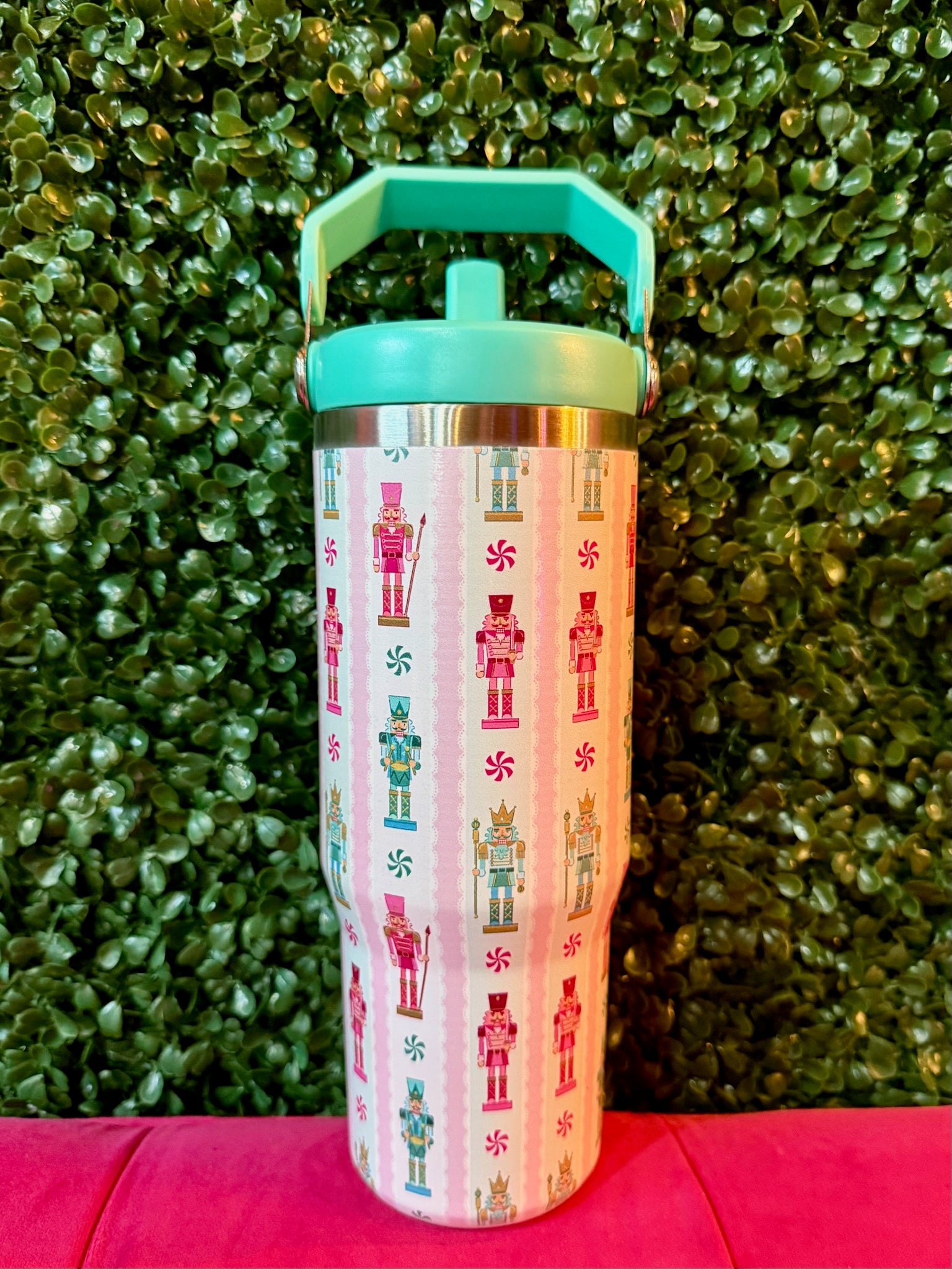 Experience the enchantment of the season with the Nutcracker Magic Travel Tumbler. Featuring charming pink and mint shades, this 30oz tumbler includes a convenient handle on the lid, making it easy to stay refreshed and festive wherever your holiday adventures take you. Carry your holiday cheer in style!