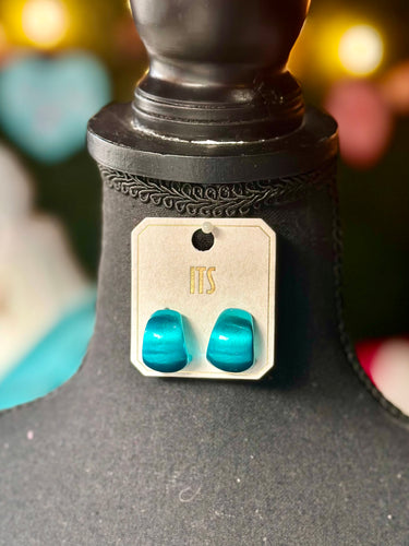 Blue Metallic Curved Earrings