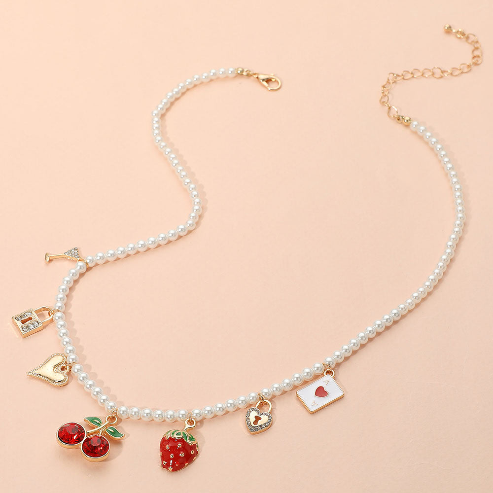 Cherry, strawberry, heart, locks, martini, and card charm necklace