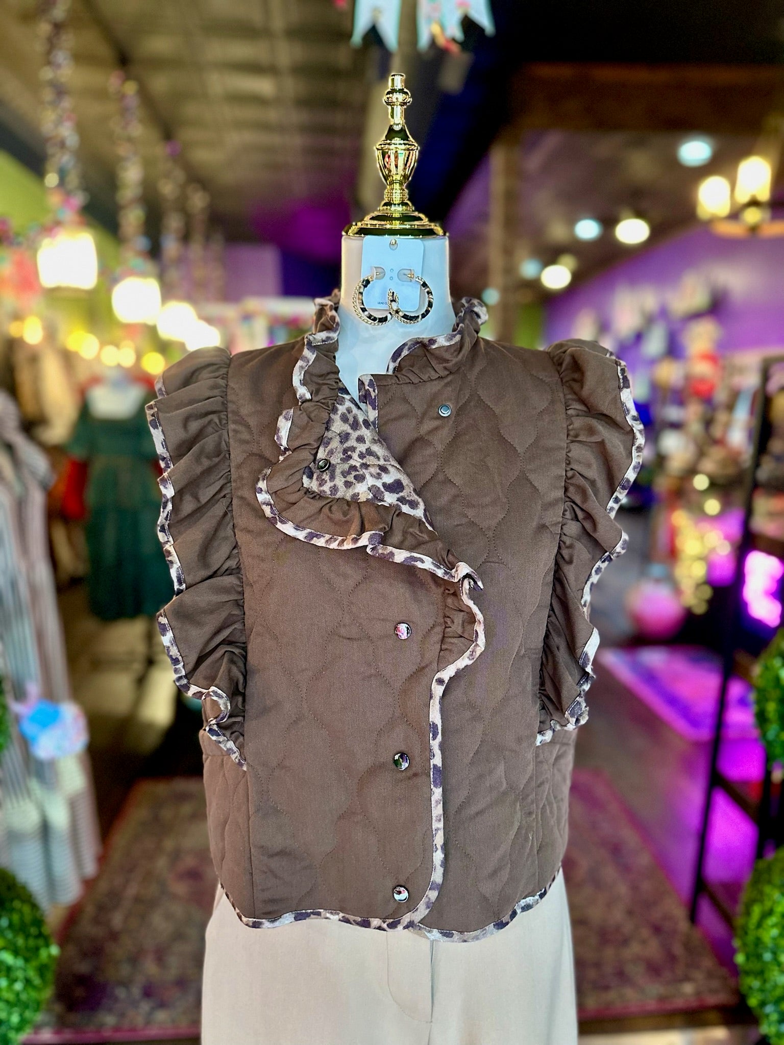 Espresso Sleeveless Ruffle Detail Quilted Vest