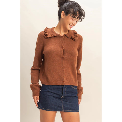Ivory Ruffle Detail Collar Cable Knit Cardigan