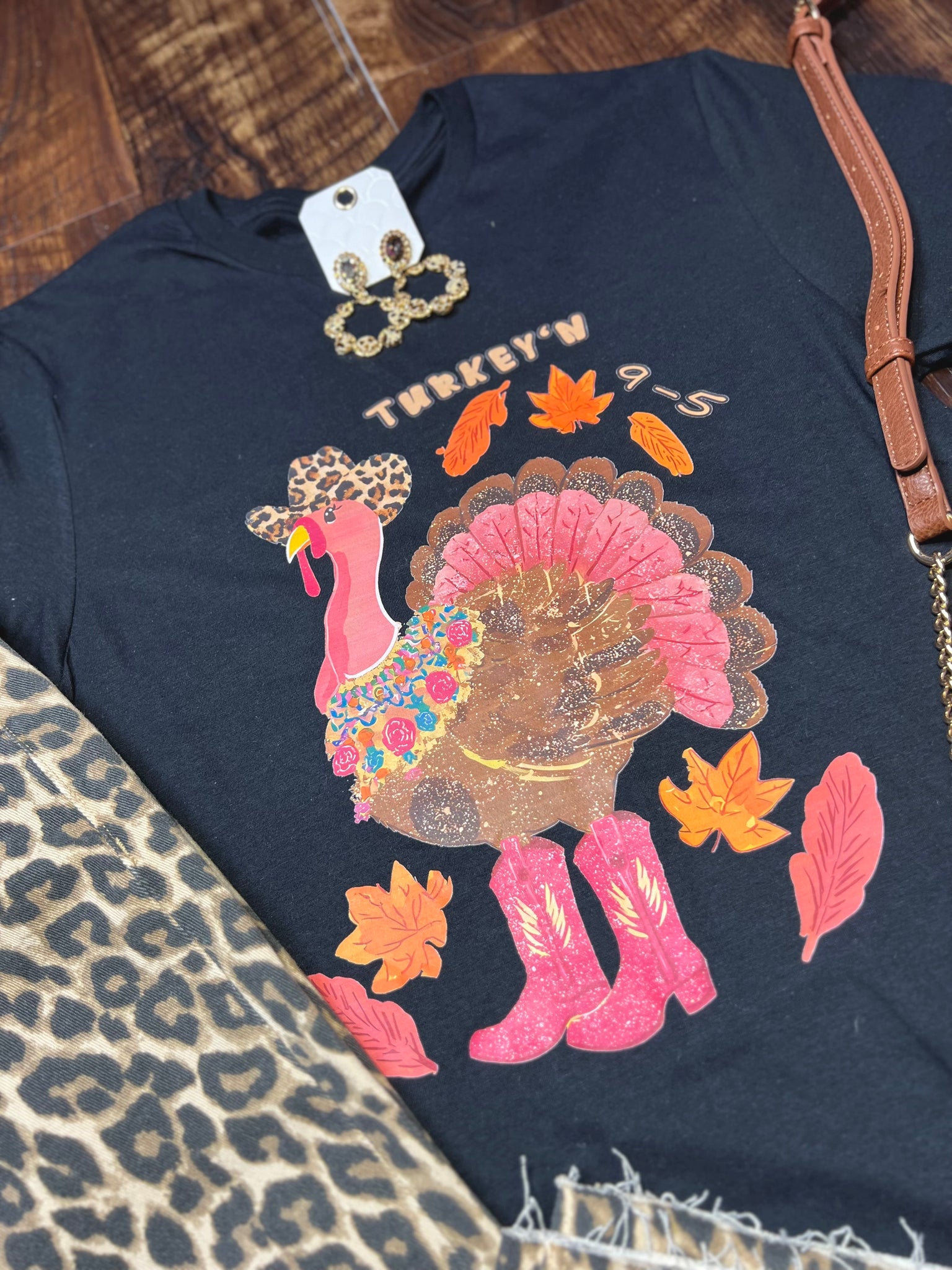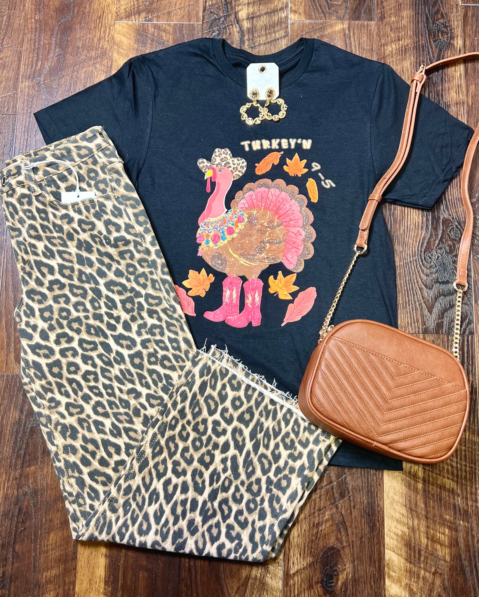 Black Gildan softstyle tee with a super cute faux glitter Dolly Turkey