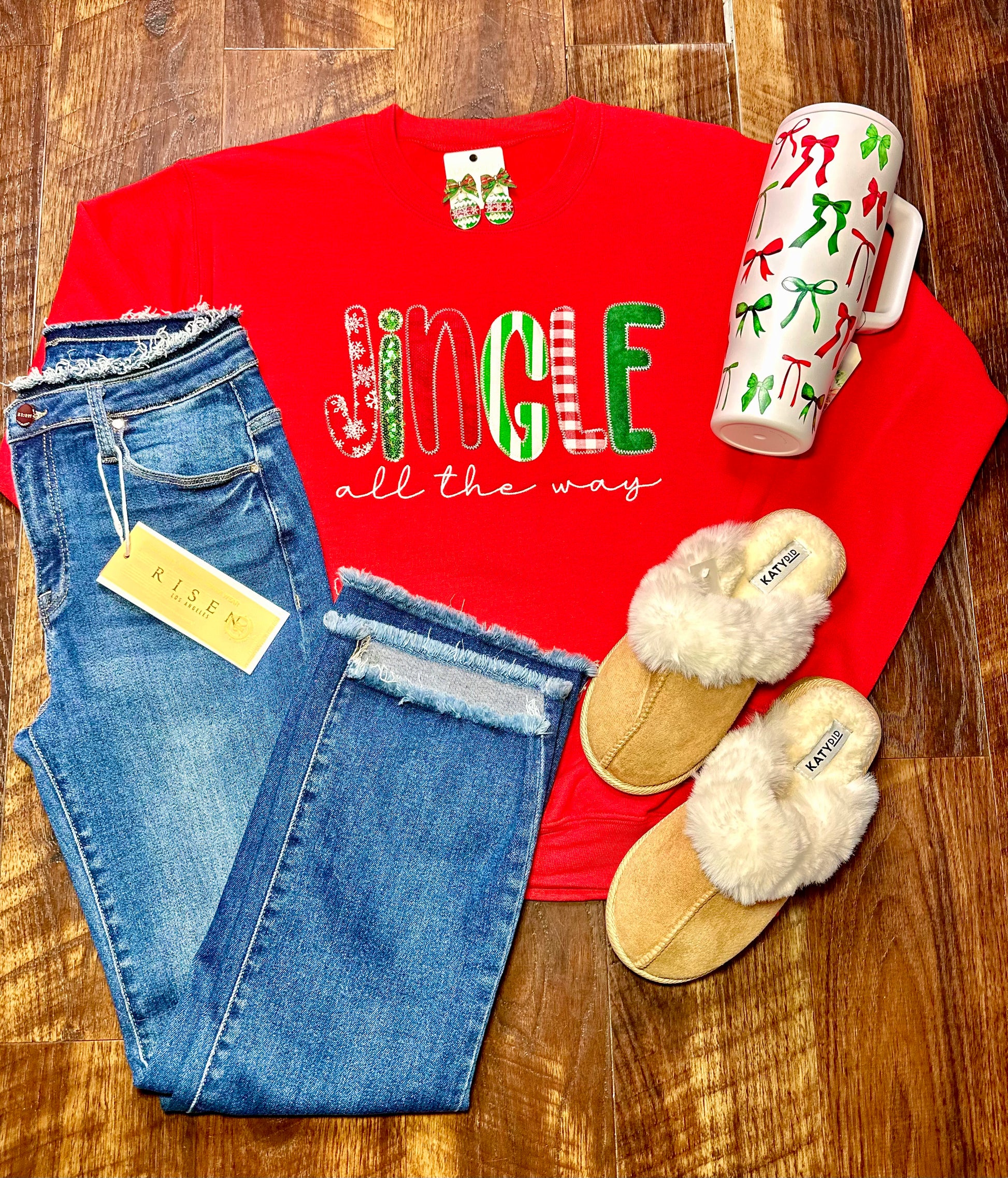 Embroidered Patchwork “Jingle All The Way” Sweatshirt