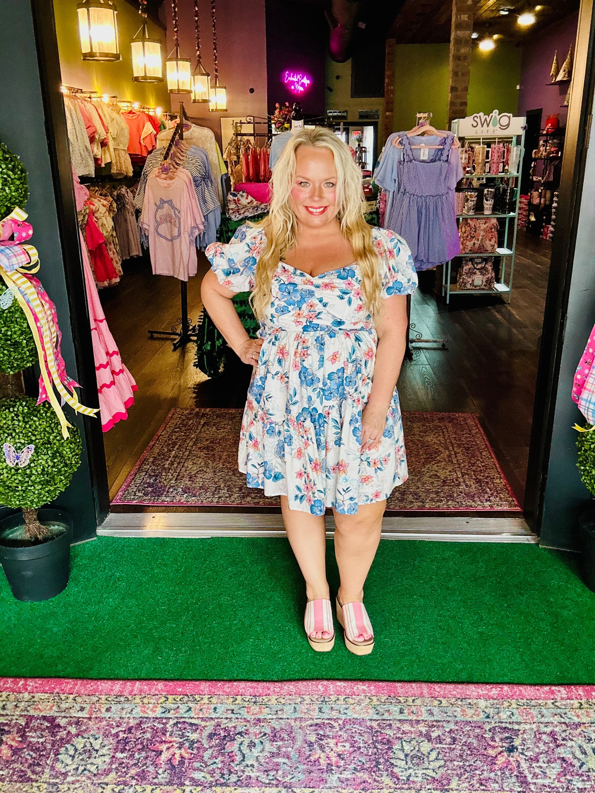 Boutique Model is wearing a large (Height: 5’ / Bust: 36” /Waist: 28” )