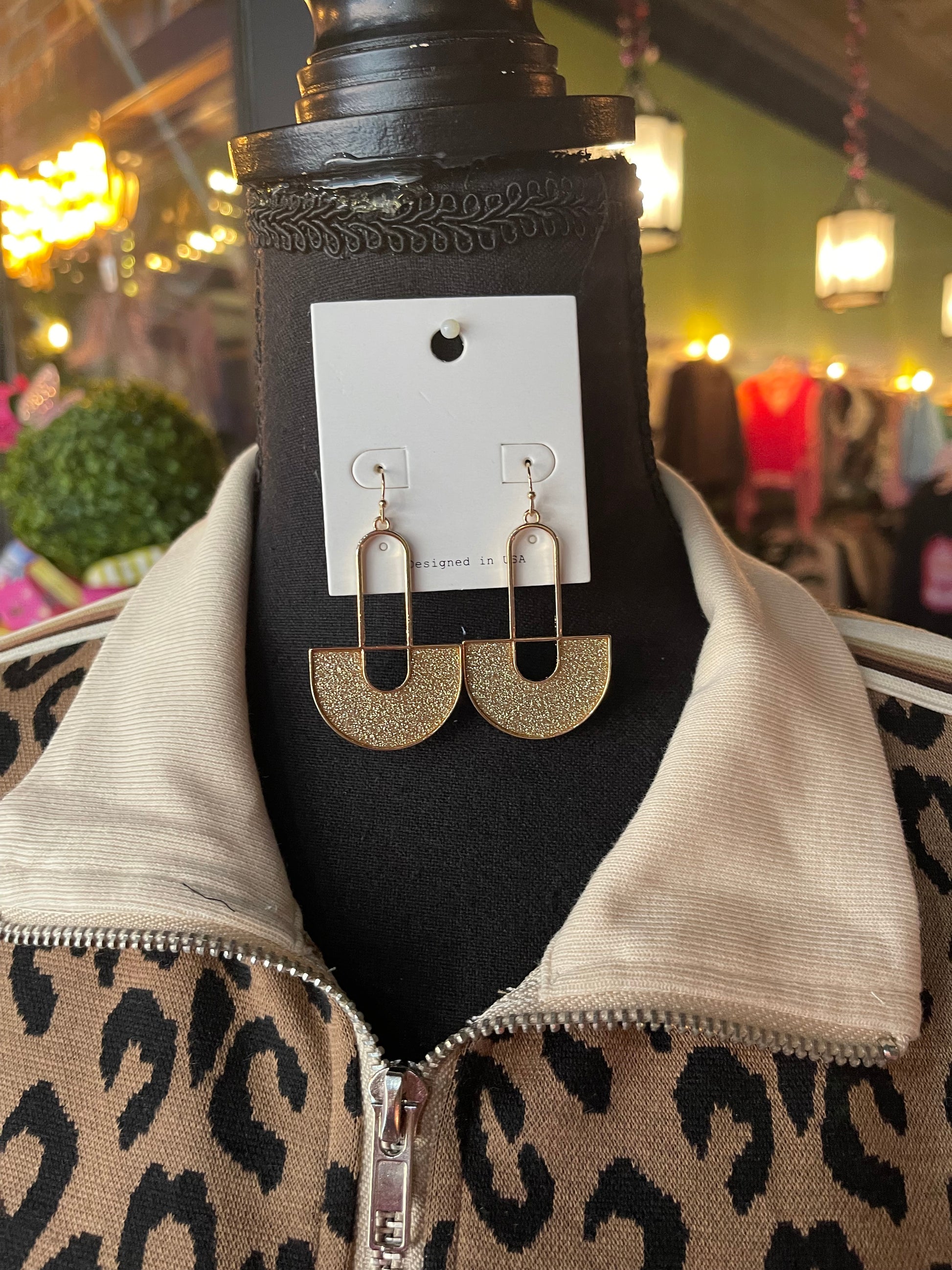 Gold Glitter Metallic Drop Earrings