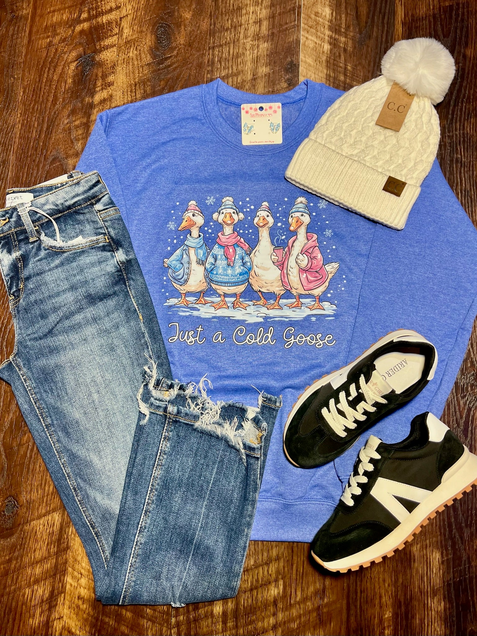 Heather deep royal gildan unisex heavy blend fleece crewneck with a cute & quirky winter geese design