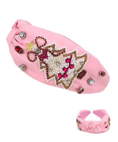Super cute pink top knot headband with sequin & beaded Christmas tree
