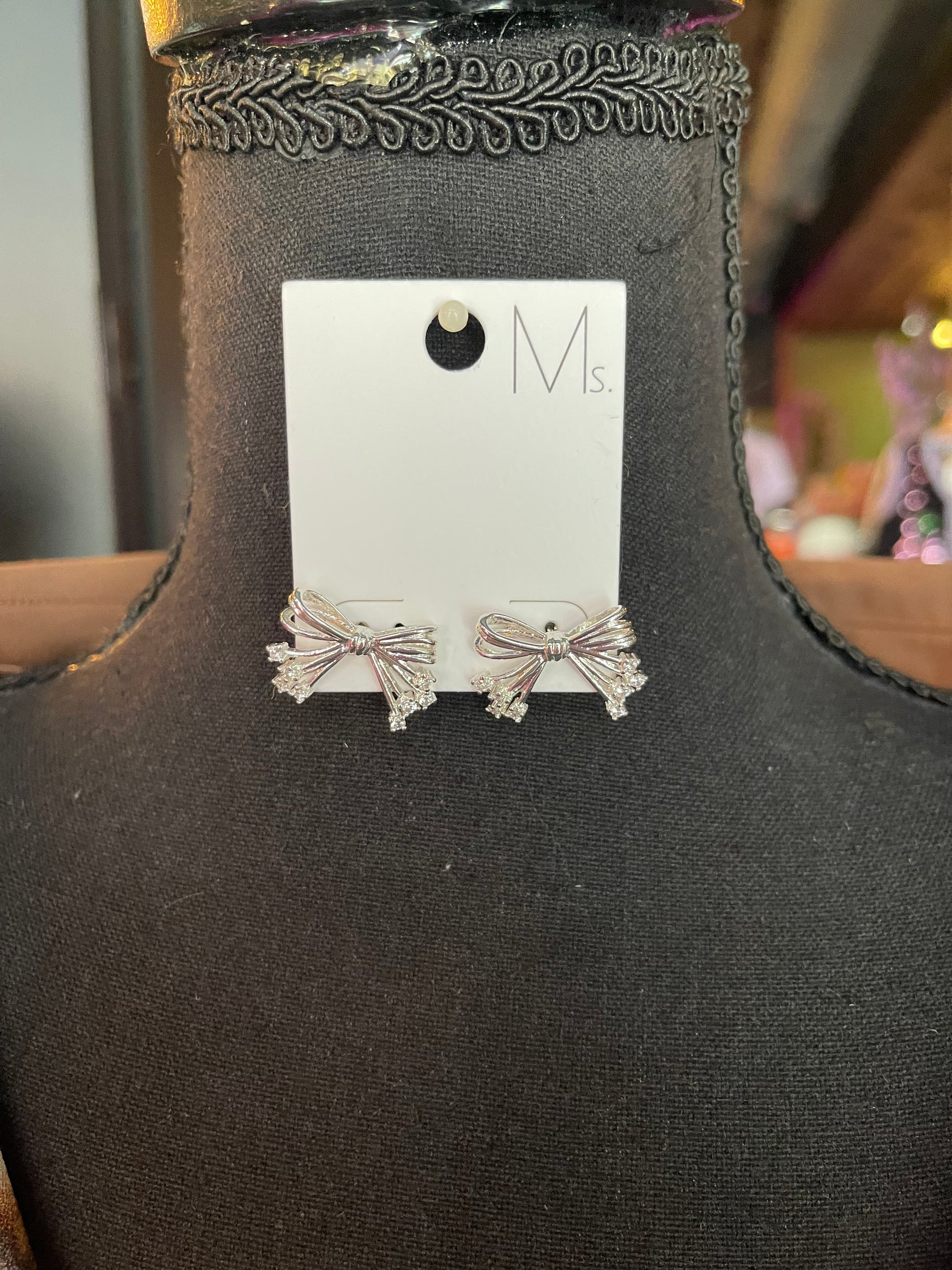 Silver Rhinestone Bow Studs