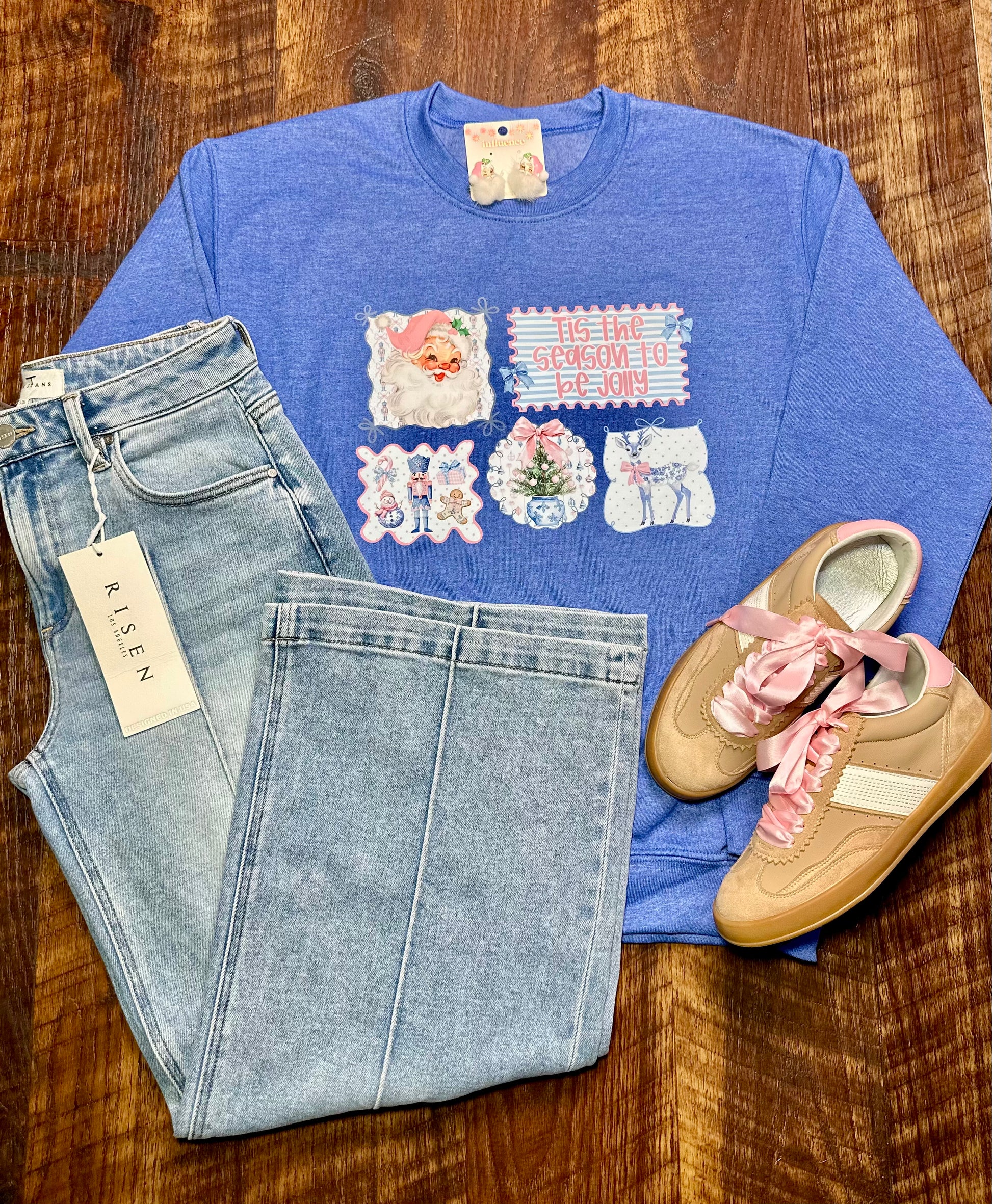 Heather deep royal Gildan sweatshirt with a beautiful chinoiserie Christmas print